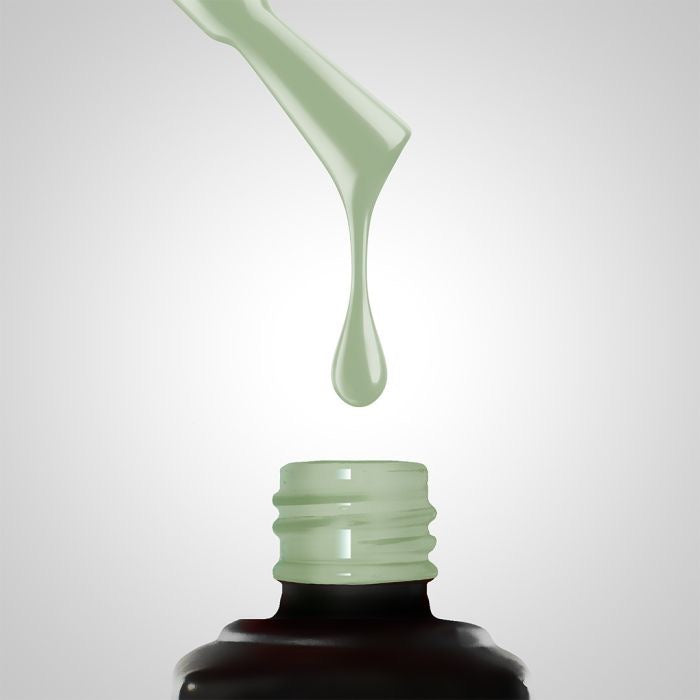 059 Matcha Latte de Slowianka Nail Trends est un vernis gel d’un vert pastel laiteux – une couleur actuellement très recherchée par les clientes.
