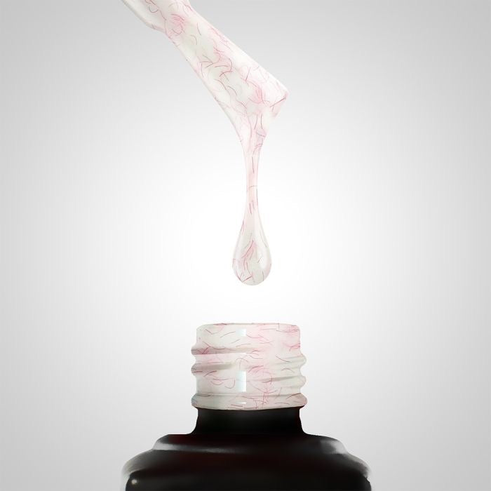 La couleur 579 est un vernis gel pastel-laité avec des microfibres roses intégrées qui créent un effet pull rose chaud.