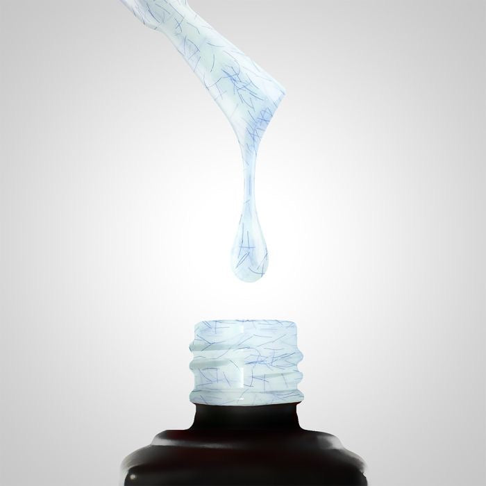 584 est un vernis gel pastel-laiteux avec des microfibres bleues qui lui donnent un effet pull bleu frais.
